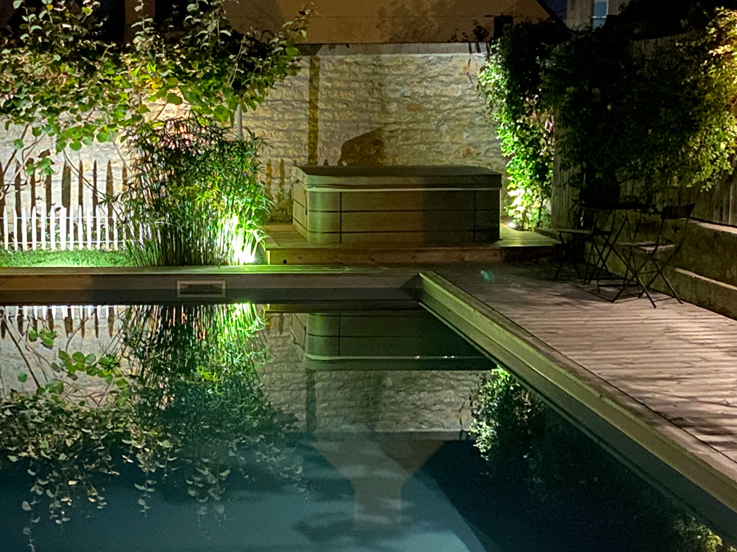 A l’extérieur, le jardin clos est un véritable havre de détente. Profitez de la piscine au sel avec pompe a chaleur, d’un spa, d’un bar extérieur et même d’un terrain de pétanque. Idéal pour accueillir famille et amis. Plusieurs emplacements de voiture et un local vélos complètent l’ensemble.
